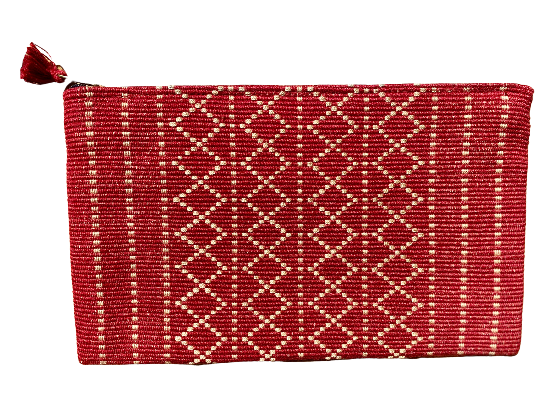 Diese Clutch aus handgewebtem Stoff ist farbenfroh und vielseitig. Von Kunsthandwerkerinnen aus den Dörfern Chizami und Meluri in Nagaland, Indien, im Laufe von 2–4 Wochen auf Rückengurtwebstühlen handgewebt.
