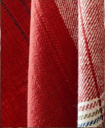 Handwoven with pure Ladakh Pashmina that has been hand dyed with madder, marigold and indigo. The narrow width allows for this to double up as a stole.